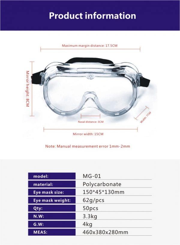 a)、The size of goggles shall be in accordance with the manufacturer’s